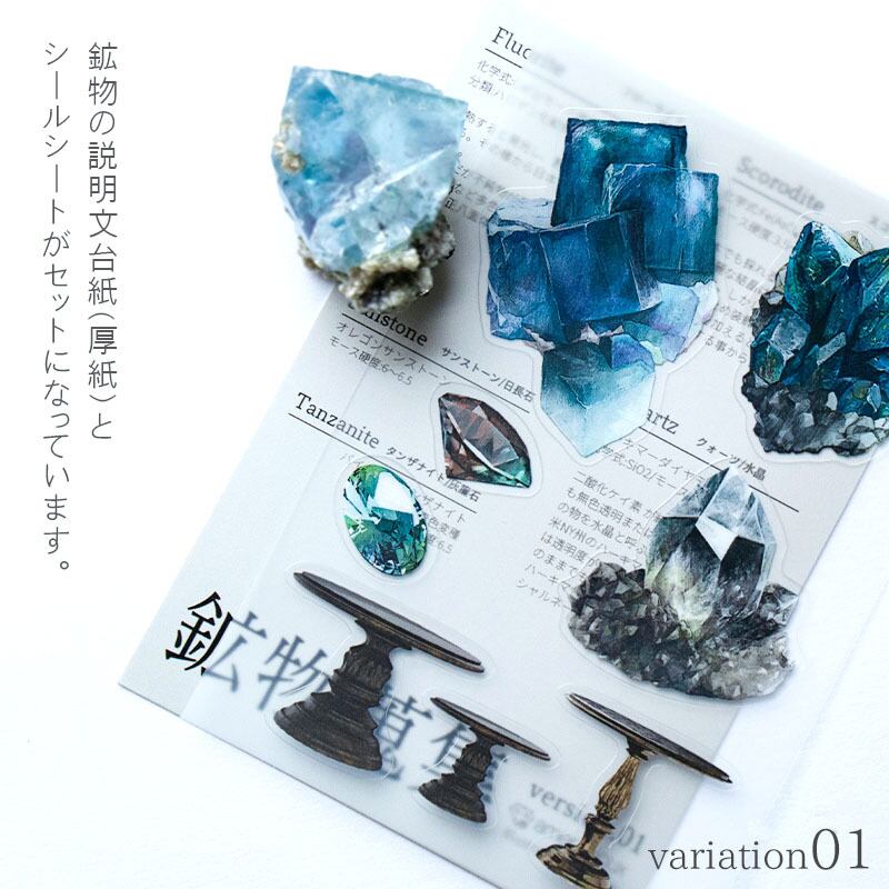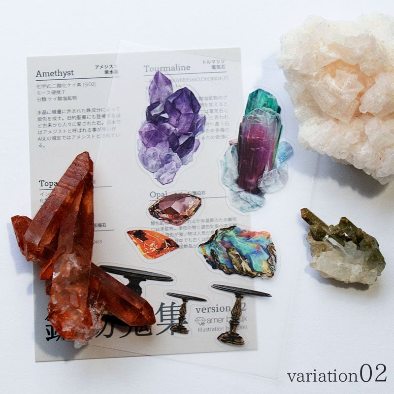 シール 鉱物 天然石 宝石 原石 結晶 鉱石 水晶 ハーキマー フローライト トルマリン トパーズ サンストーン タンザナイト スコロダイト オパール ガーネット アメジスト 透明 図鑑 リアル コラージュ ステッカー 手帳 デコ / amb-nkto-02 / 何考tenderOZAKI / AmerBijoux