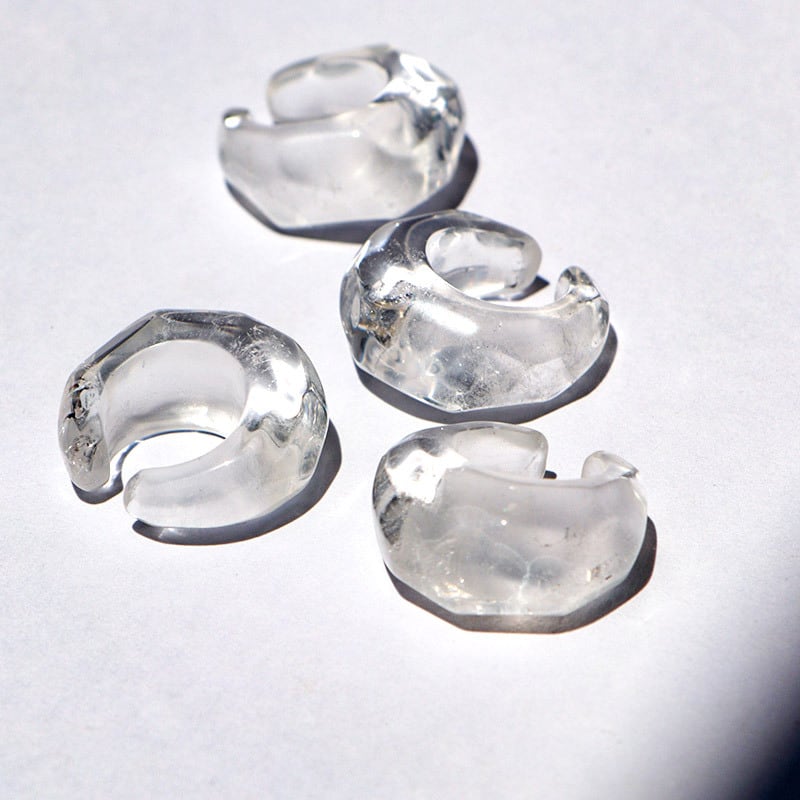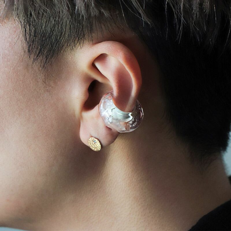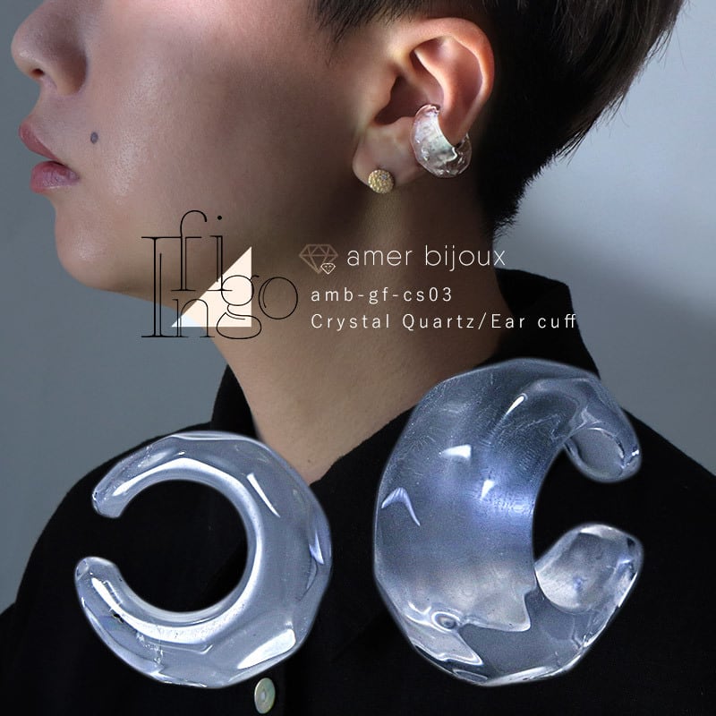 気軽に使えるゴロンと大きめなイヤーカフ欲しいな・・と思い、水晶をズバッとくり抜いて作ってみました。